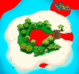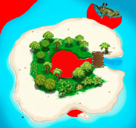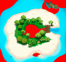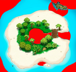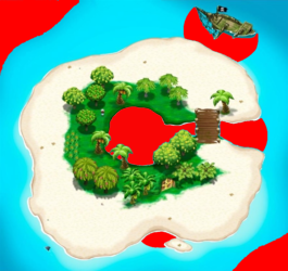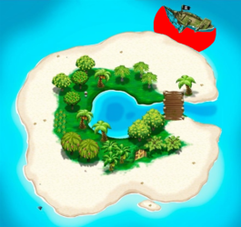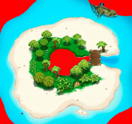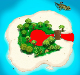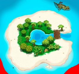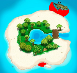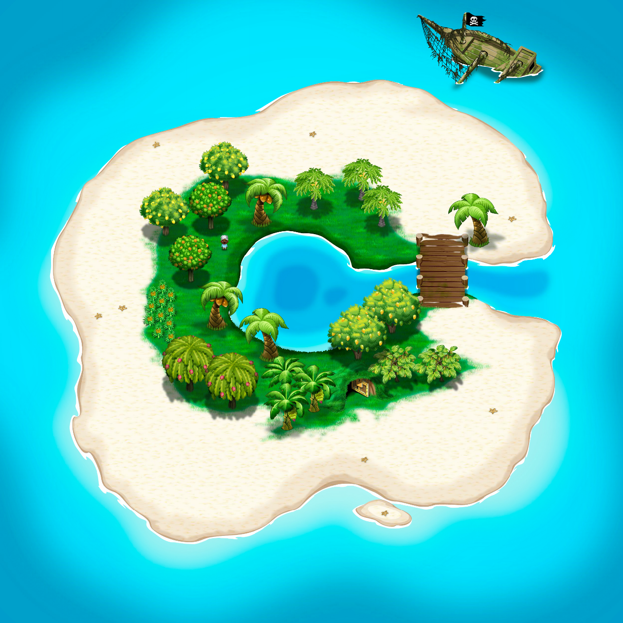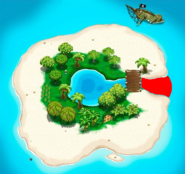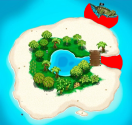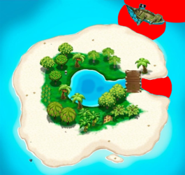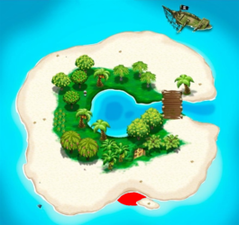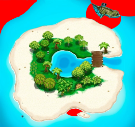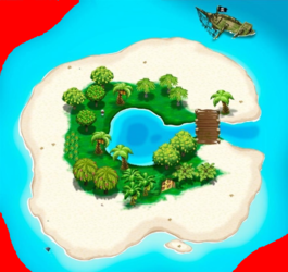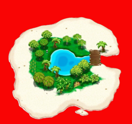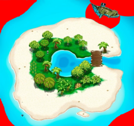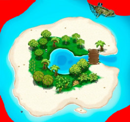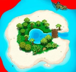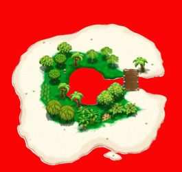 Tato oblast zobrazovala tropický ostrov s mnoha druhy ovocných stromů a jezírkem uprostřed. Říčku, která jezírko spojovala s mořem bylo možné přejít po krátkém dřevěném mostě. V pravém horním rohu u pobřeží ostrova ležel stroskotaný vrak pirátské lodi.